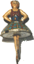 Item #4835: DANCER Mechanical toy, by Louis Marx. Tin litho toy operated by pulling a sawtooth tool through a slot in the toy. Fine condition. Dancer in blue green, red and yellow dress and red and white ballet shoes whirls on her toes. 5 1/2 in. tall, tool is 6 1/4 in. long. Few scratches on face and hem of dress. Signed "Marx Toys, Made in United States of America". c. 1940s.SOLD