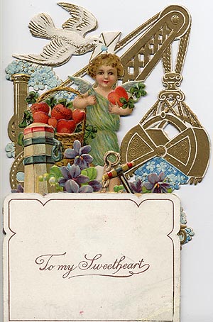 February 14 is St. Valentine's Day. It is customary on this day to give one's sweetheart a symbol of one's high regard. These are handmade Victorian valentines, dating from the late 19th century and the early part of the 20th century. Delicate, colorful and beautiful, they make a thoughtful and inexpensive gift at any time of the year. For collectors, they are an ideal collectible, involving relatively small expense, taking up very little space and making a beautiful display.