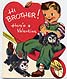 Item# VAL712: FAVORITE BROTHER VALENTINE. Looking for a card for your dear brother? This is it! A boy in overalls sits in a wheelbarrow with his puppies. Card says, "Hi Brother! Here's a valentine." Inside, the poem reads, "On Valentine's Day, I'm going to shout it - 'You're one swell Brother, No doubt about it!'" This card is by Norcross, a company that went out of business in the early 1980s. It is in pristine condition and unused. Perfect for your brother! 5 1/4 inches high, Made in USA, circa 1950. SOLD.